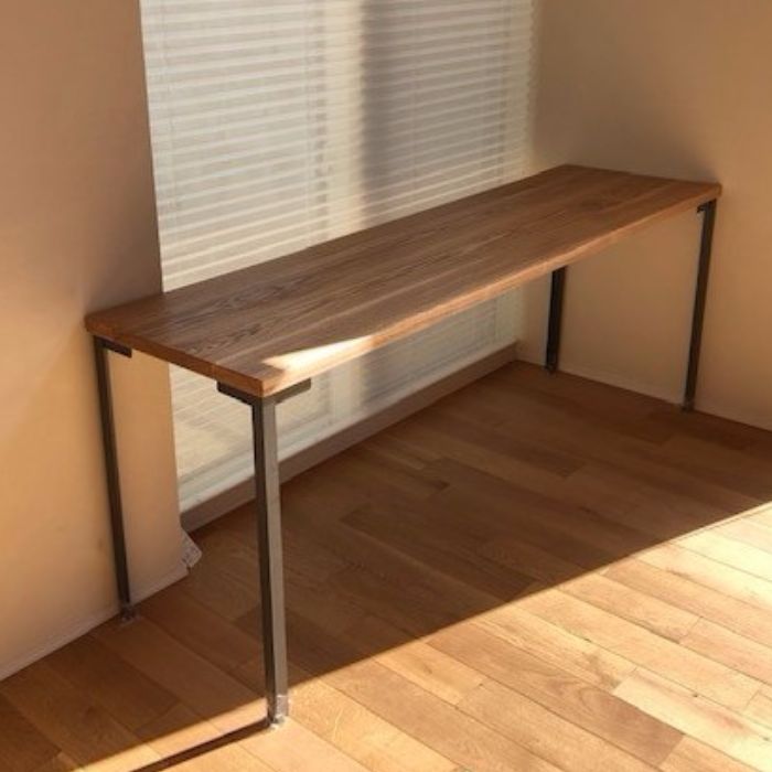 DIYテーブル用・Lアングル鉄脚・天板載せタイプは、天板を載せる部分がLアングルの『L』をひっくりかえした形状の天板厚、取付け位置を問わないアイアン脚。コーナー部でも内側に入った位置でもお好きな位置に取付けが可能です。高さ710mm以下までは同額にてお作りをさせて頂きます(711mm以上については要・追加料金)。Lアングルは3mm厚×30×30の材料サイズなので30mm前後の木天板だと見た目がよい仕上がりになると思います。
