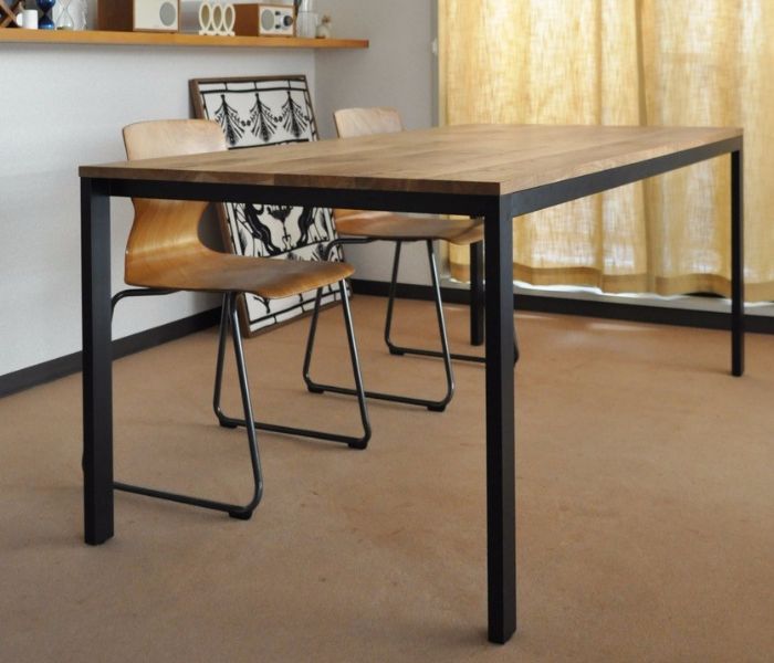 杉並区T様より、一枚板ダイニングテーブル脚のご依頼を頂きました。形状は天板を載せるだけのT字脚のデザイン。天板はトチの一枚板でW1500×D770×厚みが55mm、そして重量は約35kgということでゴツめの角パイプでテーブル脚をお作りになられるのかなと思ったのですが、細い脚で攻めたデザインにされたいということで21×21(mm)角パイプで製作をさせて頂きました。私は仕事柄どうしても安定感を重視した材料チョイスをしてしまうのですが、細いテーブル脚のデザインがお好きな方が最近多いです。今回のT様のケースも安定感が少し心配ではありましたが、問題なく設置完了できたそうなのでよかったです。ちなみにフレームと天板の間はクッションゴムだけで設置されたそうですが、念のためにビス固定用の貫通穴も加工をさせて頂きました。また、ご参考までですがT字型の脚は四角と台形形状を組み合わせた変形デザインもよくご注文頂きます。ご興味ある方はお問合せくださいませ。
