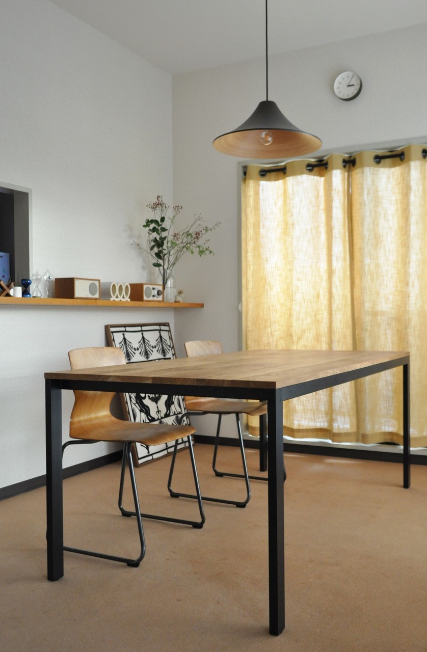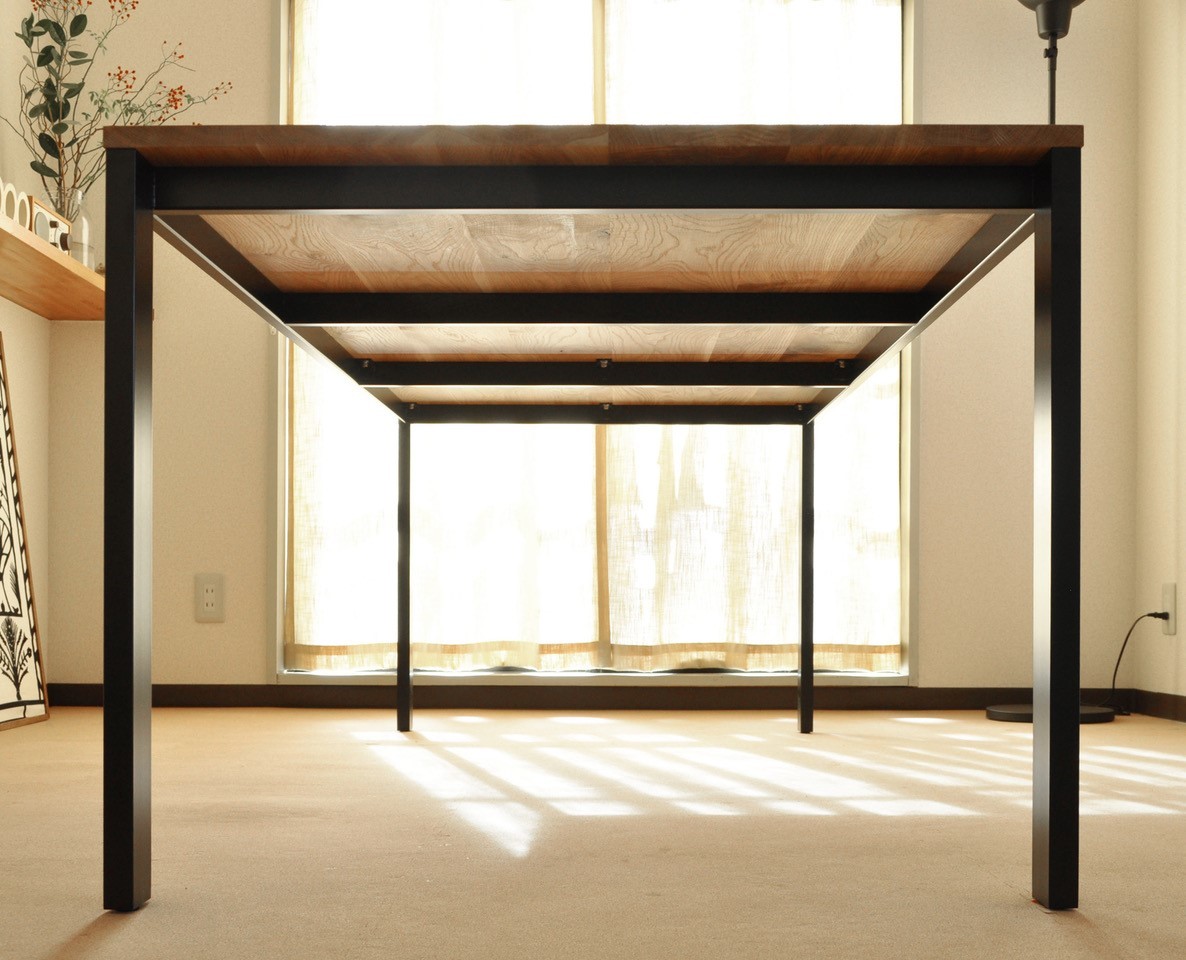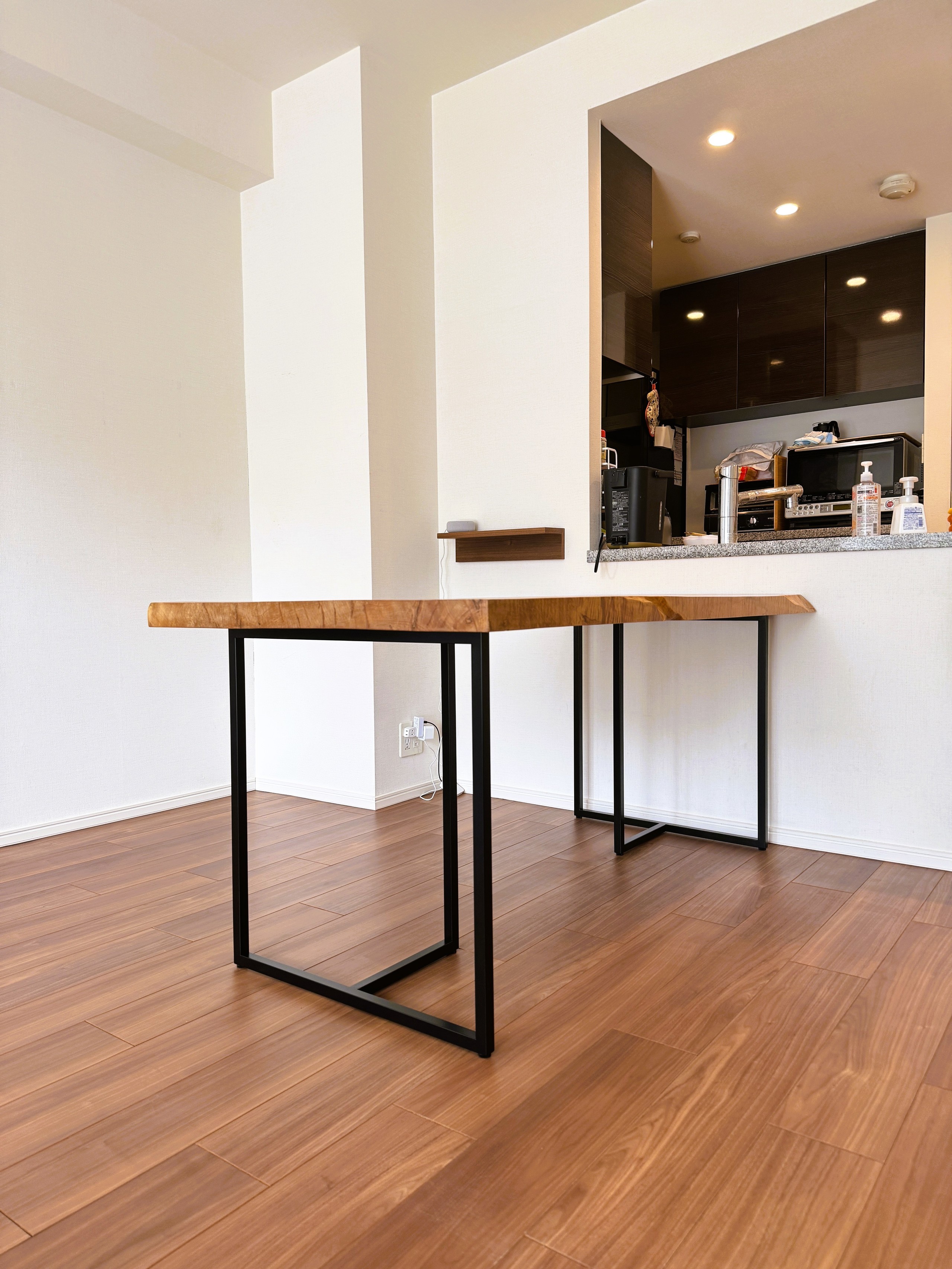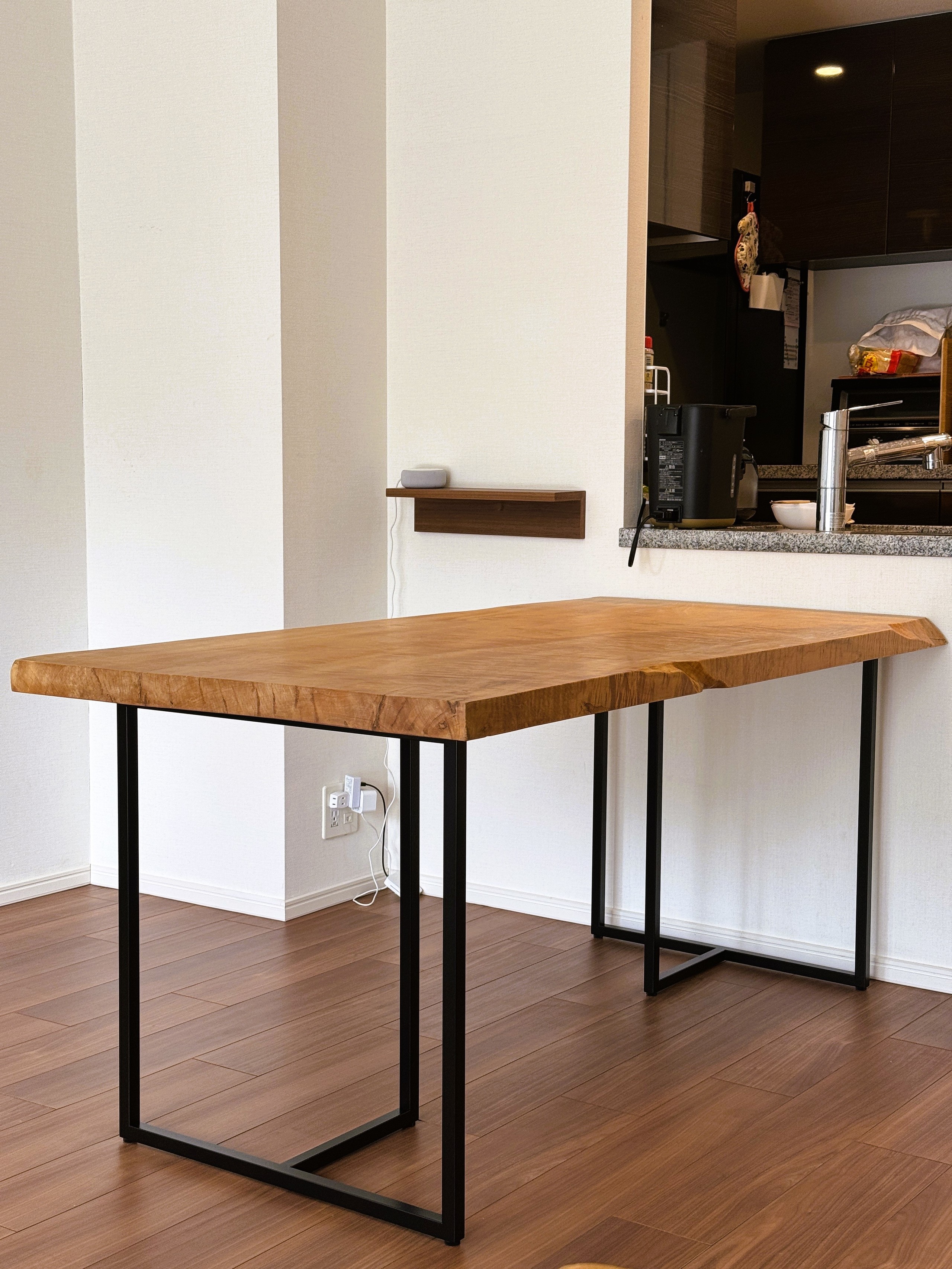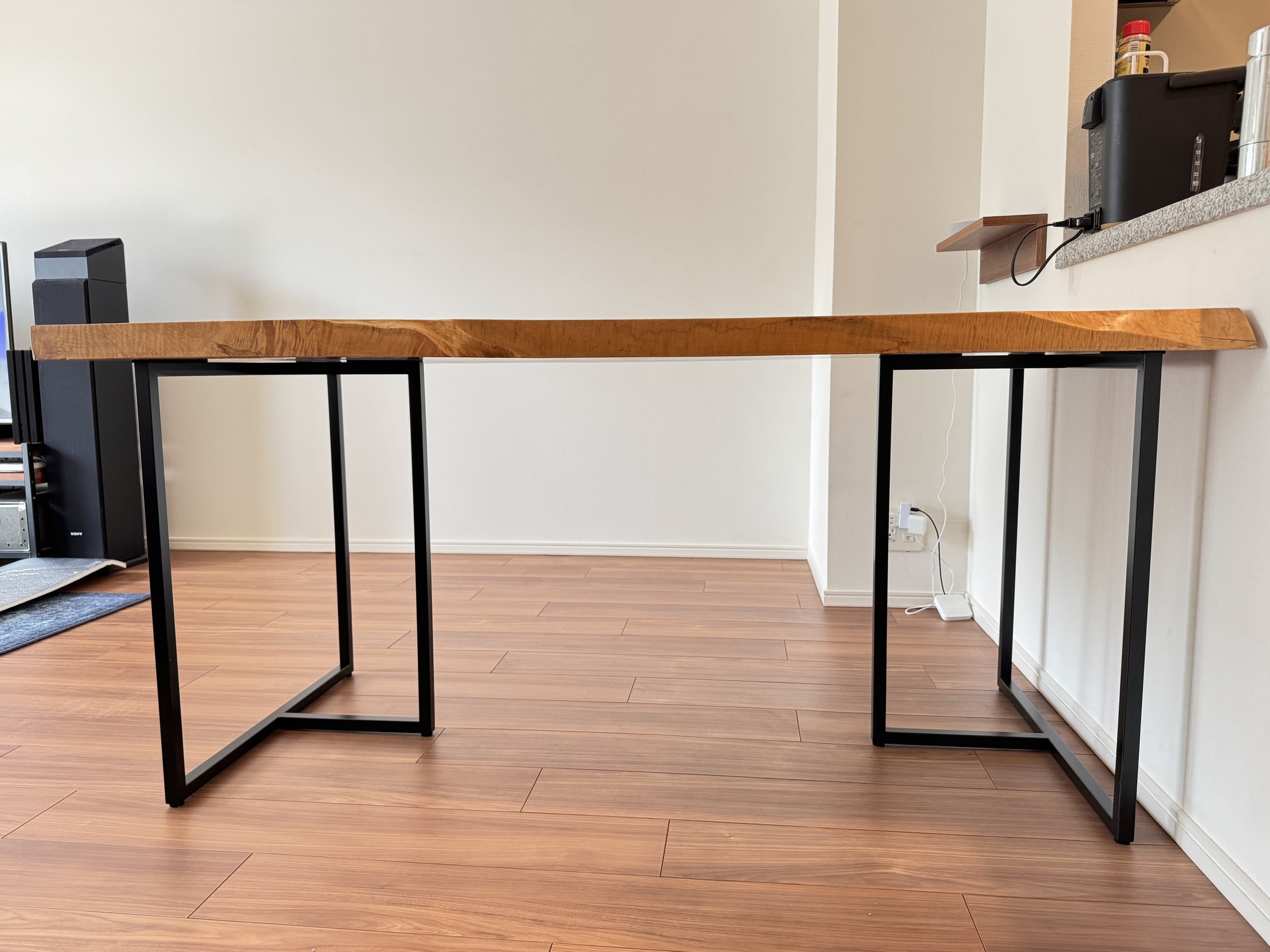 杉並区T様より、一枚板ダイニングテーブル脚のご依頼を頂きました。形状は天板を載せるだけのT字脚のデザイン。天板はトチの一枚板でW1500×D770×厚みが55mm、そして重量は約35kgということでゴツめの角パイプでテーブル脚をお作りになられるのかなと思ったのですが、細い脚で攻めたデザインにされたいということで21×21(mm)角パイプで製作をさせて頂きました。私は仕事柄どうしても安定感を重視した材料チョイスをしてしまうのですが、細いテーブル脚のデザインがお好きな方が最近多いです。今回のT様のケースも安定感が少し心配ではありましたが、問題なく設置完了できたそうなのでよかったです。ちなみにフレームと天板の間はクッションゴムだけで設置されたそうですが、念のためにビス固定用の貫通穴も加工をさせて頂きました。また、ご参考までですがT字型の脚は四角と台形形状を組み合わせた変形デザインもよくご注文頂きます。ご興味ある方はお問合せくださいませ。