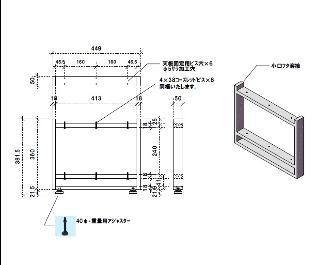 使用材料:st.1.6t×32×32角パイプ、SUS304 1.5t天板